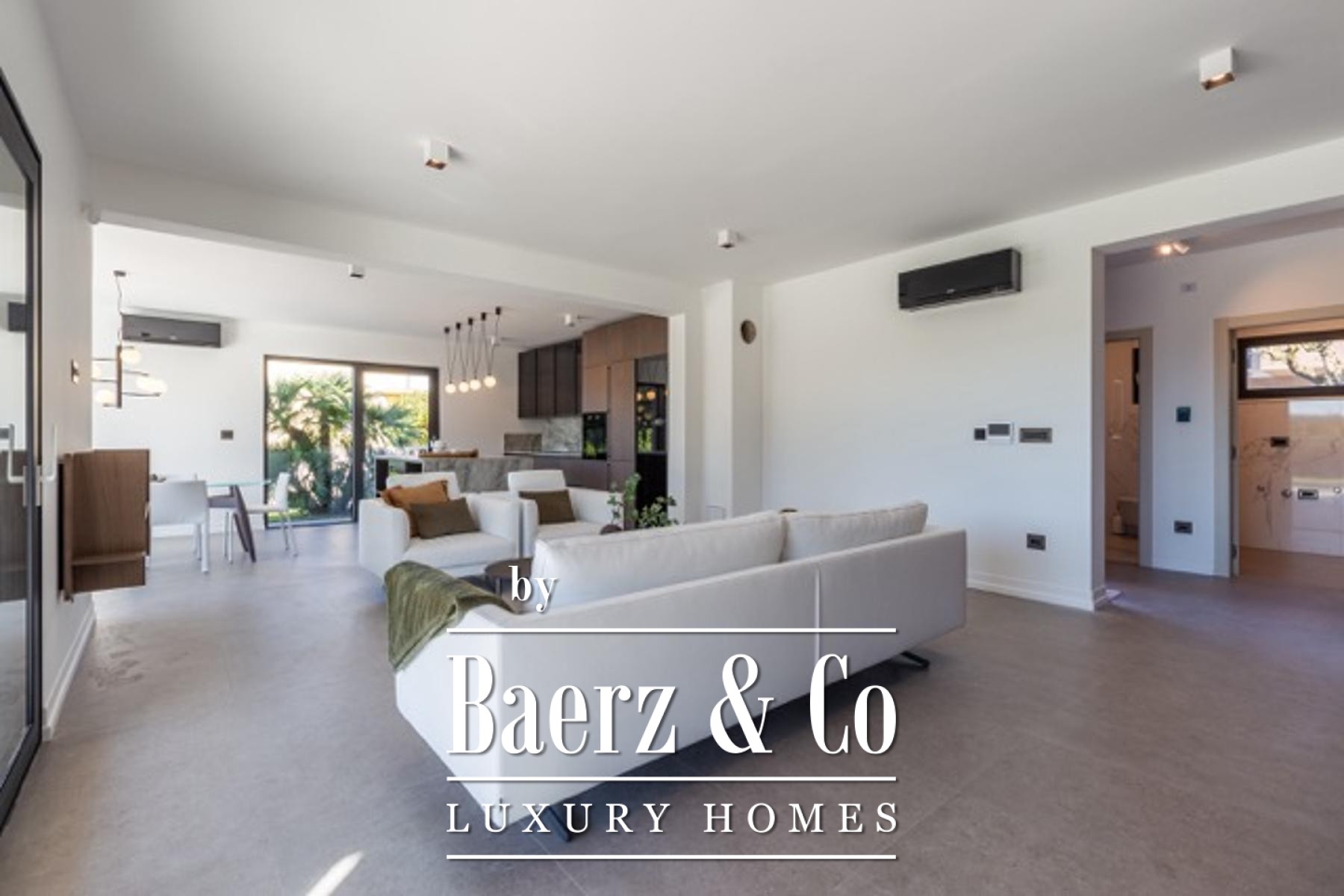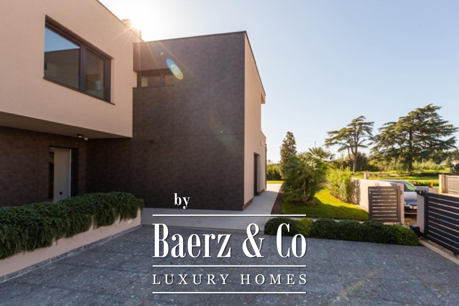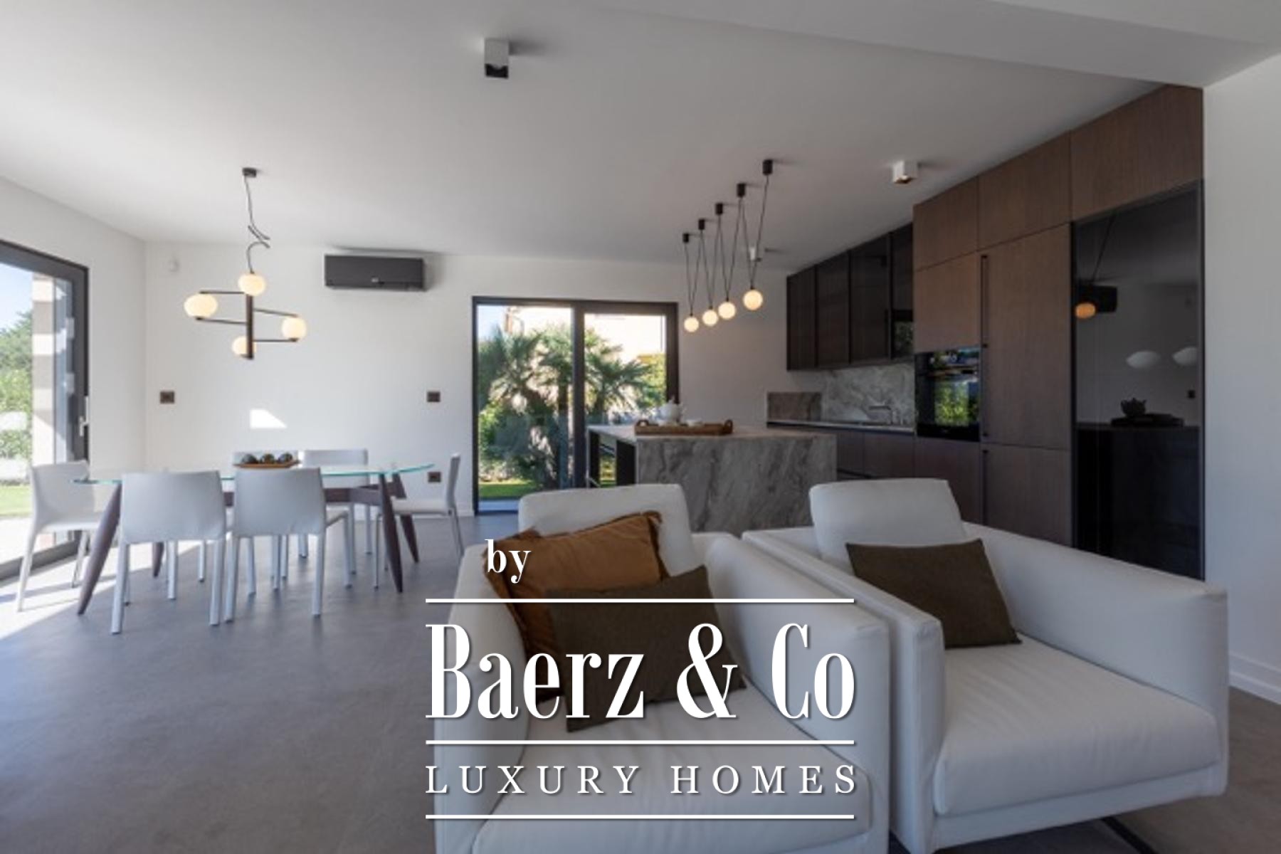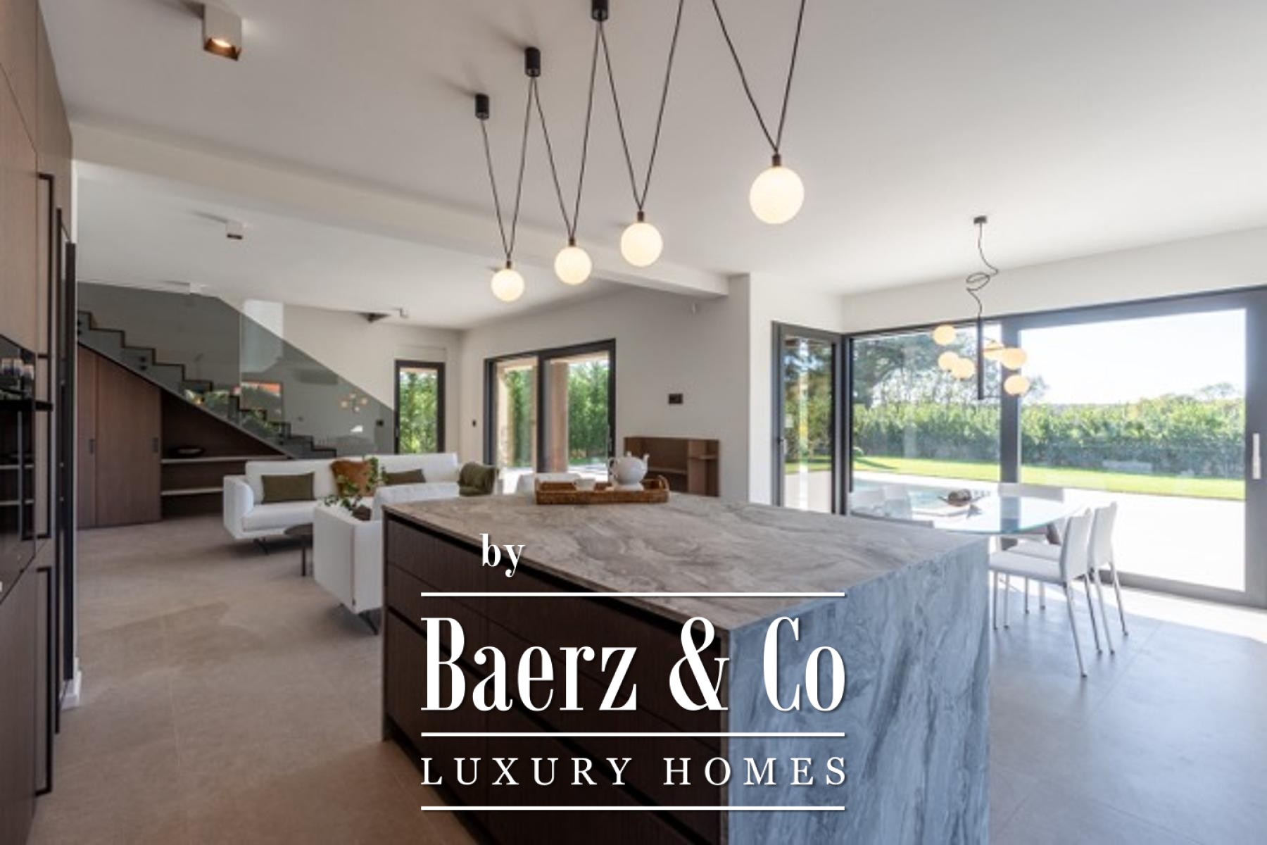 别墅的技术配置彰显对舒适与高效的重视:地暖供热泵系统、空调、三层铝合金玻璃窗配电动百叶和防蚊纱窗、独立视频监控系统及屋顶13.5千瓦太阳能发电站,保障能源自给。户外夏季厨房与设计细节为空间增添悠然聚会氛围,技术间配备净水系统提供更多便利。