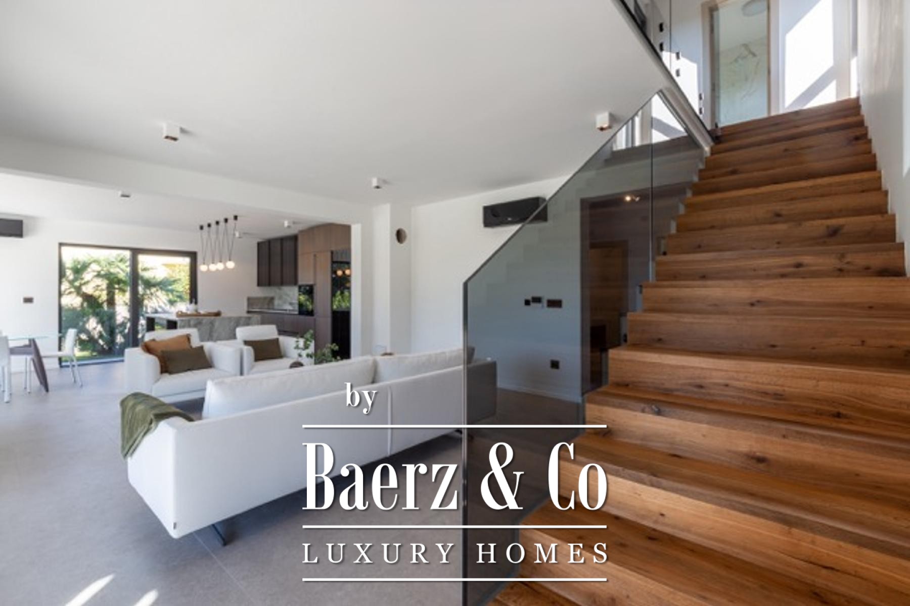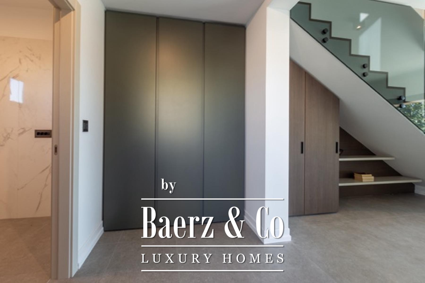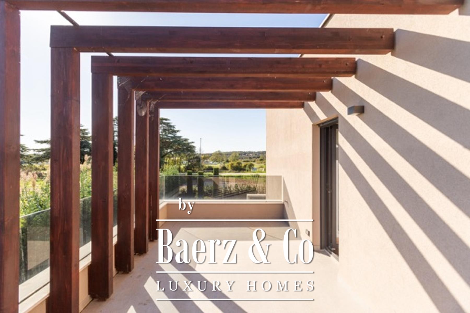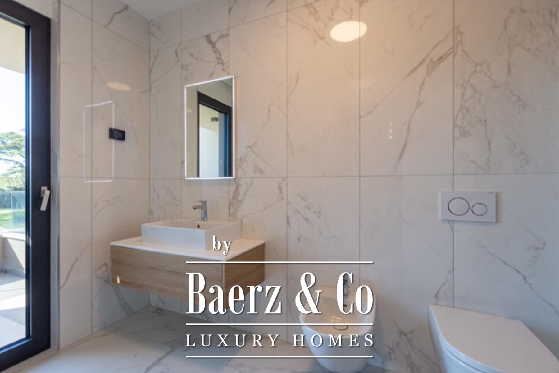 步入室内,高挑的天花板与开放式布局营造出开阔而明亮的空间。落地玻璃令精心修整的花园与9.5米乘3.5米的恒温泳池尽收眼底。主层与户外空间自然衔接,自动灌溉系统保持庭院的静谧氛围。居所中心设有玻璃楼梯,通往三间配套现代浴室的卧室,其中两间卧室设有专属露台,为午后静谧时光提供理想场所。