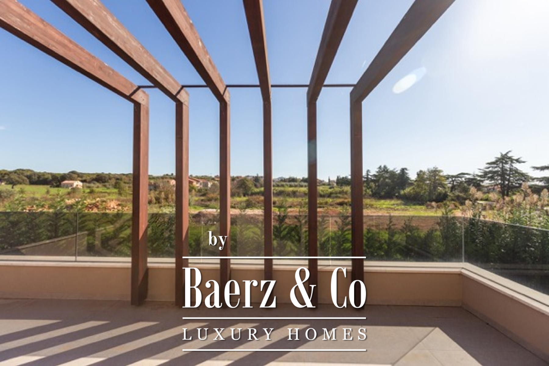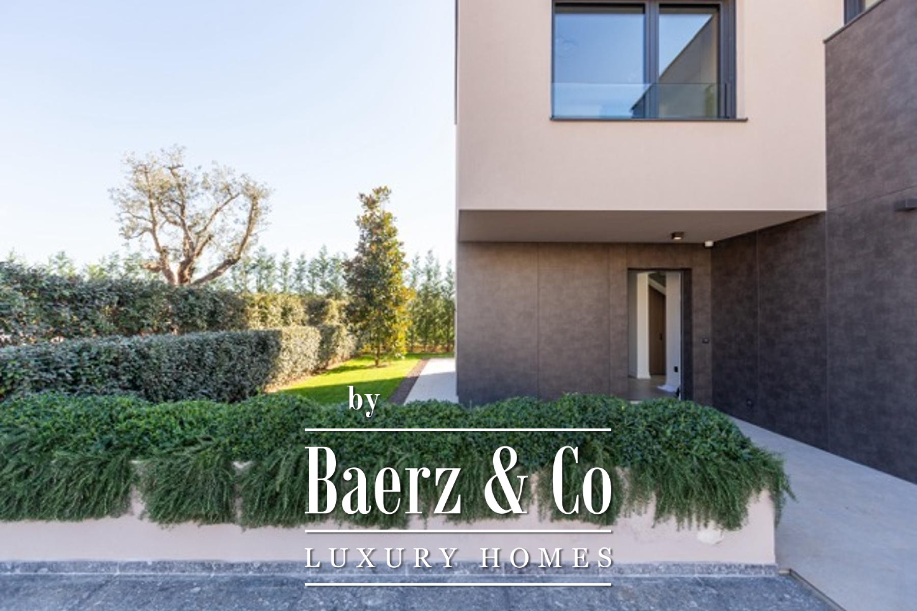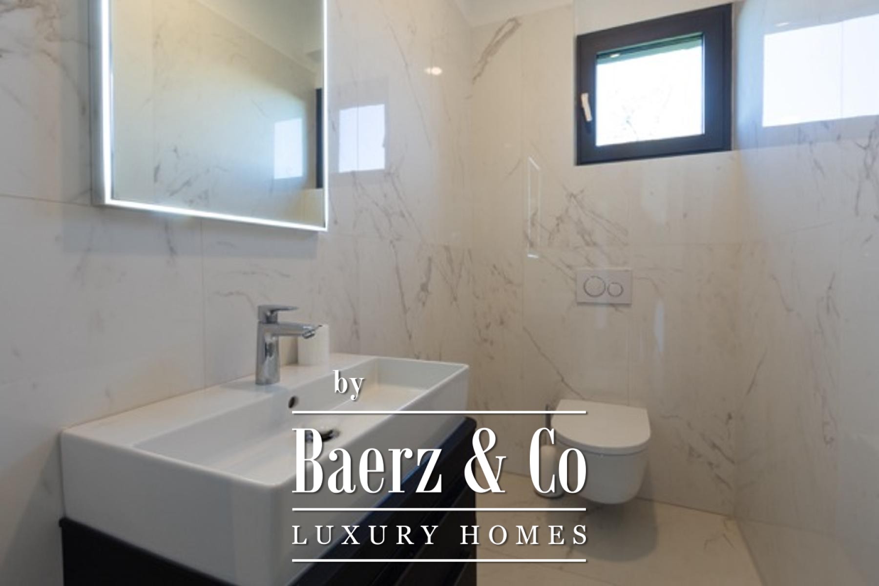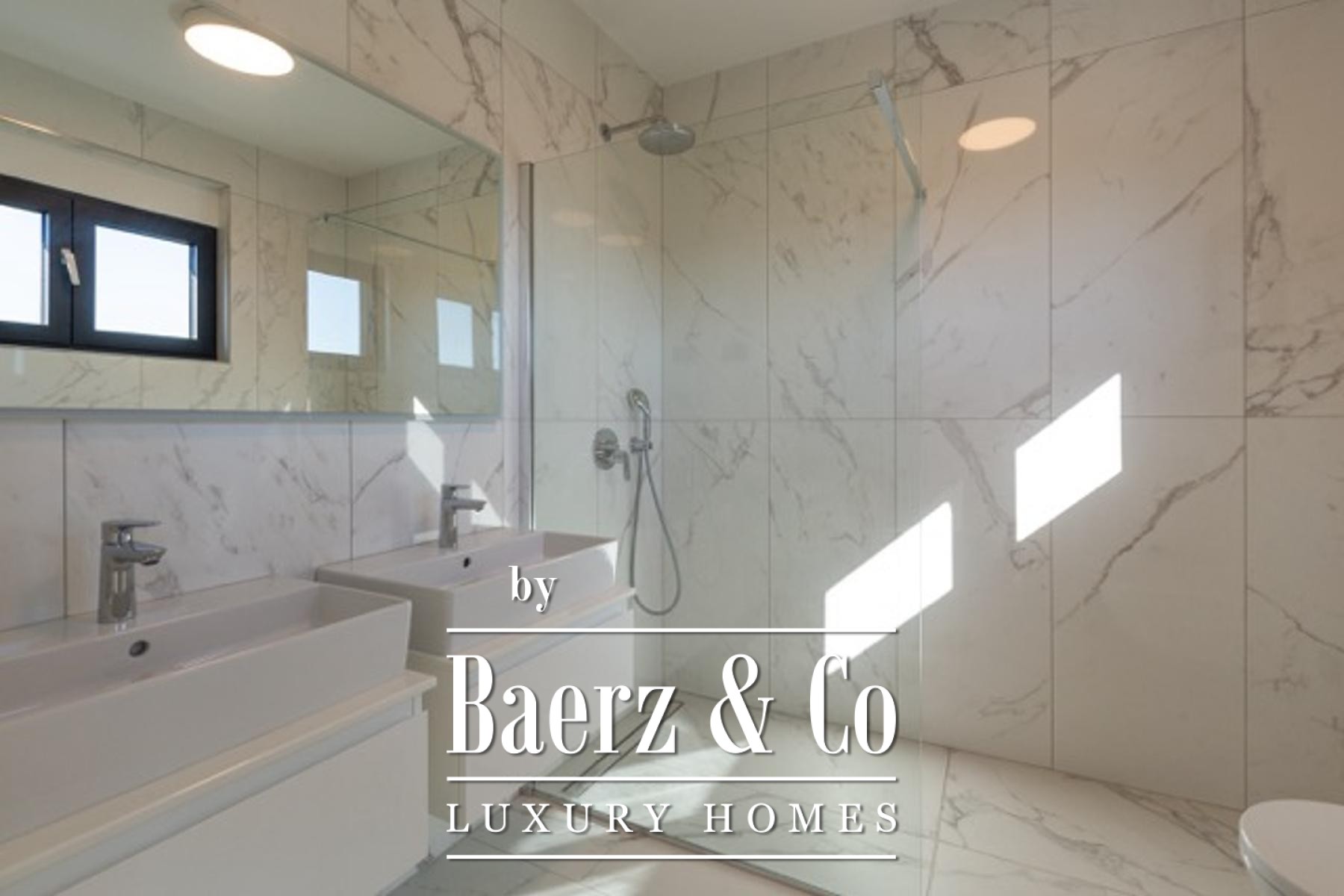 步入室内,高挑的天花板与开放式布局营造出开阔而明亮的空间。落地玻璃令精心修整的花园与9.5米乘3.5米的恒温泳池尽收眼底。主层与户外空间自然衔接,自动灌溉系统保持庭院的静谧氛围。居所中心设有玻璃楼梯,通往三间配套现代浴室的卧室,其中两间卧室设有专属露台,为午后静谧时光提供理想场所。